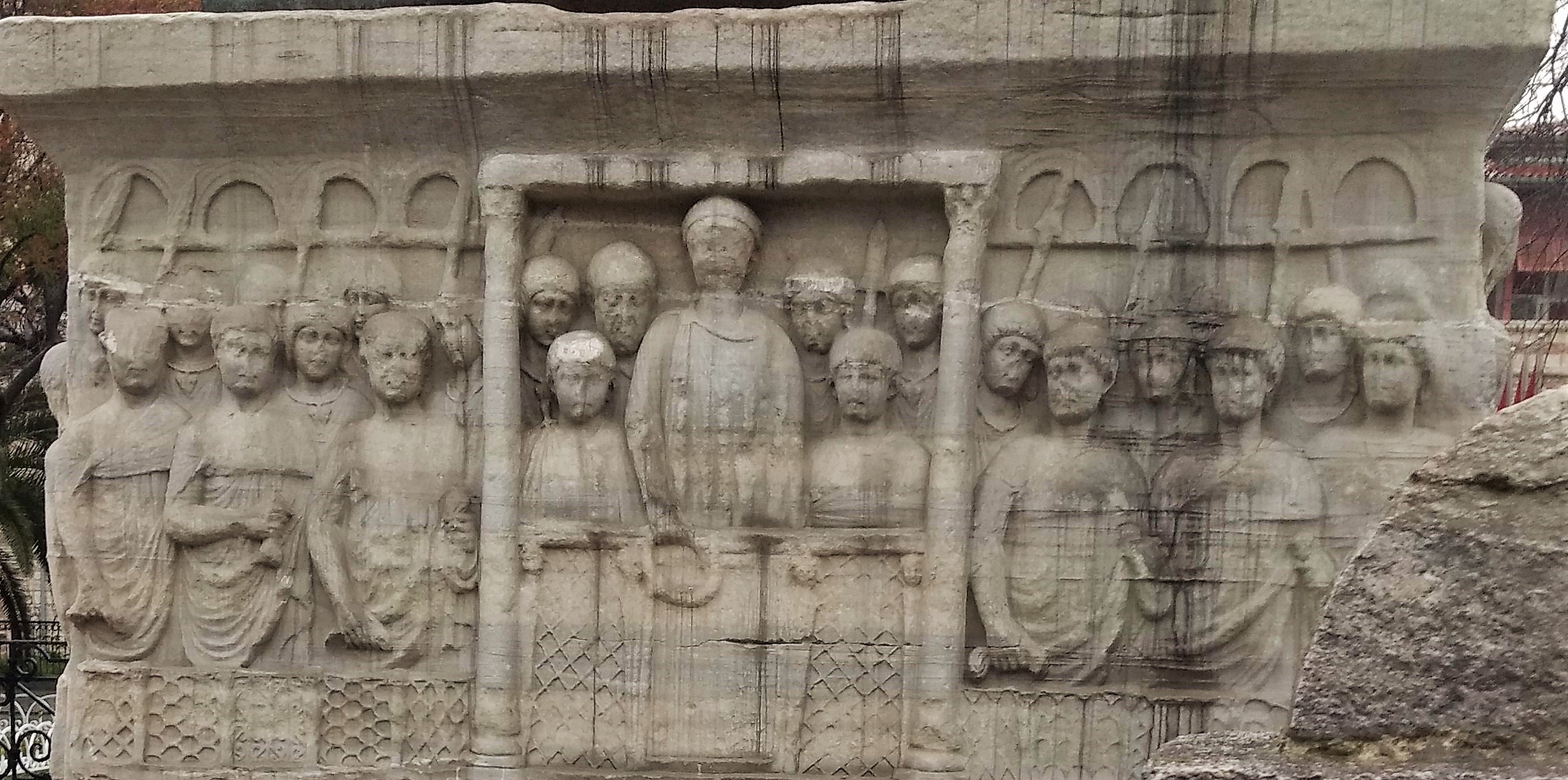 The inscriptions on each of the four sides of the main obelisk celebrate Thutmose III’s win over the Mitanni on the banks of the Euphrates sometime around 1450BC. The lower part of the obelisk was damaged at some point, making it only about 18.54m high, not including the base. The marble pedestal contains bas-reliefs showing Constantinople’s Emperor Theodosius I offering the victory crown at the horse races along with scenes of merry making and celebration.