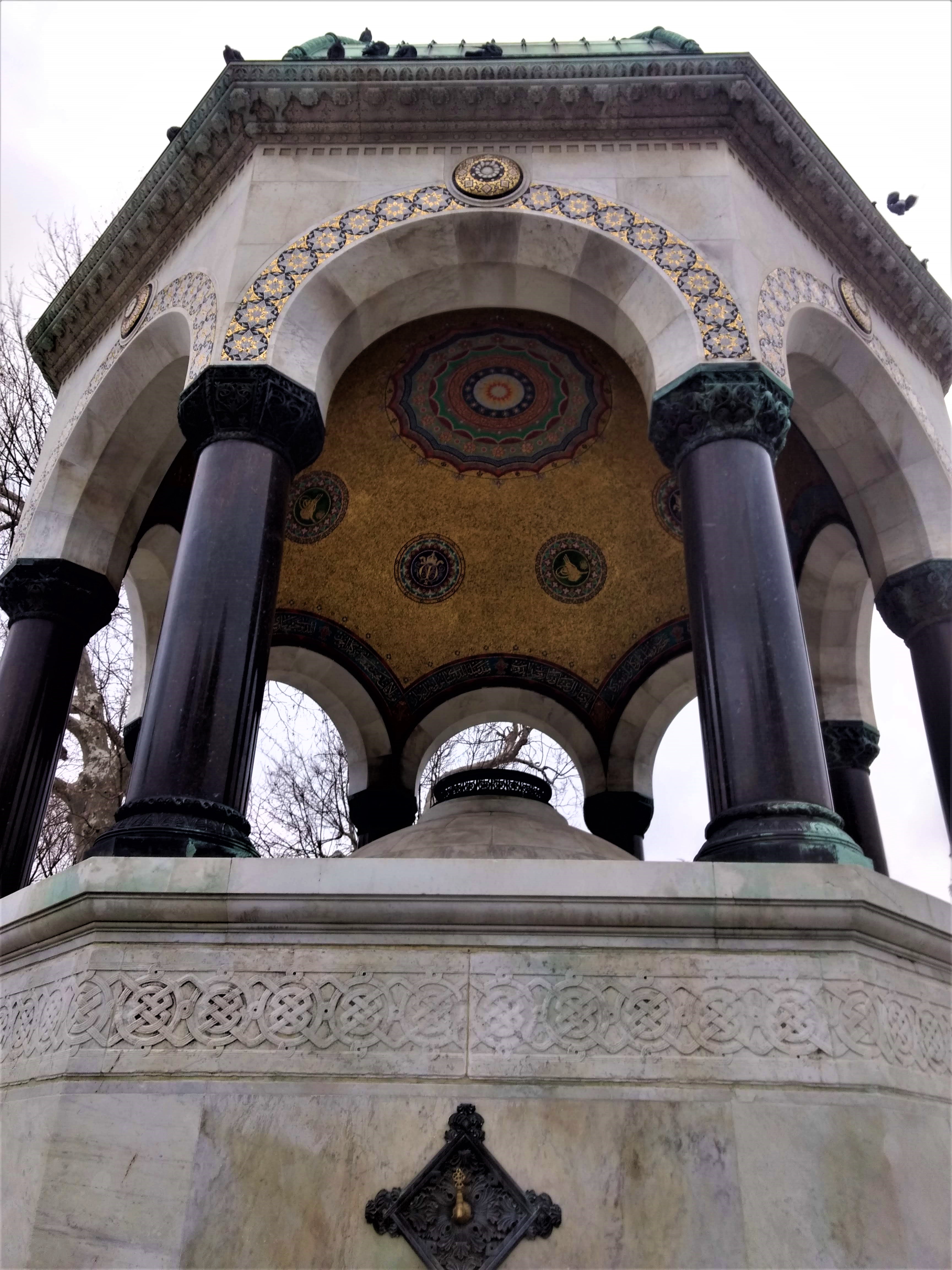 This was a lovely little structure at the north end of the Hippodrome. It’s worth a look at the beautiful artwork under the dome. The fountain was a gift from the German government to commemorate Kaizer Wilhelm’s 1898 visit with his wife Empress Augusta to gain favor with the Ottoman Sultan Abdülhamid II. The reason for this was that the Kaizer aimed to build the Baghdad Railway, which would offer a beneficial shortcut from Europe to Asia for German economic and military interests (along with wanting to export German-made rifles to the Ottoman military). True to the Sultan’s suspicions, however, the Kaizer was also clandestinely staking out his country’s oilfields.