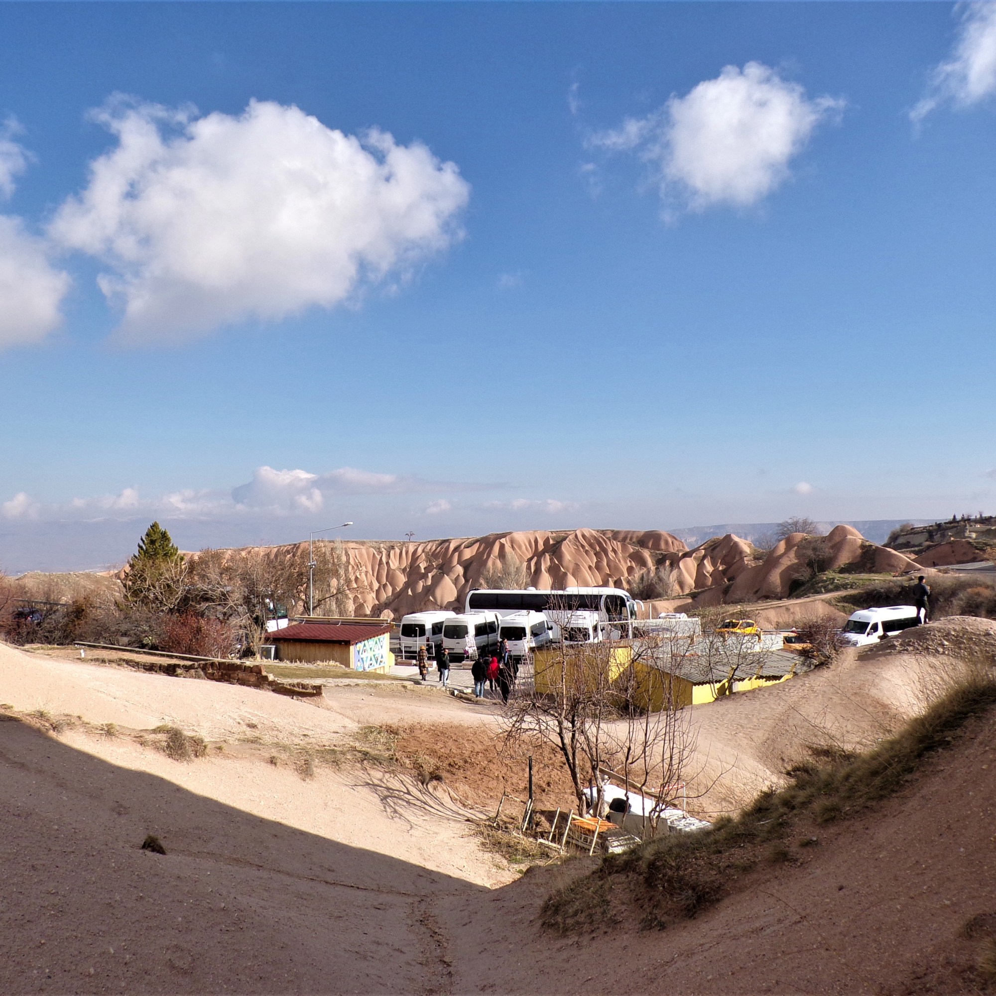 Cappadocia’s lunar-like landscape, with its vast stretches of varying rock formations and plains, vaguely reminded me a bit of when I lived for a few years in New Mexico and of last year’s visit to Tibet. Cappadocia’s considered one of the top places to ride a hot air balloon in the world, which would excite me more had I not already been familiar with the International Hot Air Balloon Festival in Albuquerque, New Mexico. It was too bad we weren’t able to ride a hot air balloon in Cappadocia due to strong winds on our rest day, but we were happy to see some lift off from our vantage point during a tour of the Red Valley.