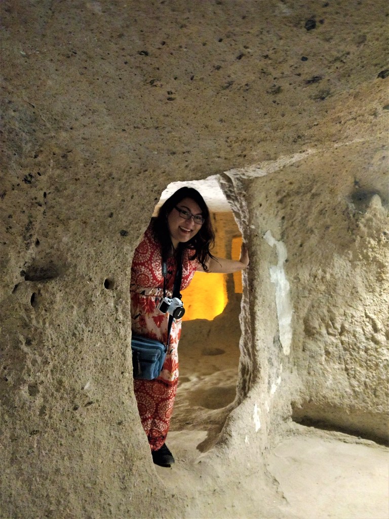 Out of the 8 floors, only four were open to us. It was really neat to get a feel for how the people lived here without running water and electricity. Our guide stated that they’d spend months at a time underground, shown in the remnants left of scorch marks and wax from candles and torches. There were spaces carved for livestock, storage, wineries, latrines, cooking, prayer rooms…basically anything needed for maintaining a lifestyle. I enjoyed hearing stories of Indiana Jones-like booby traps with heavy rotating stone wheel doors and arrows.