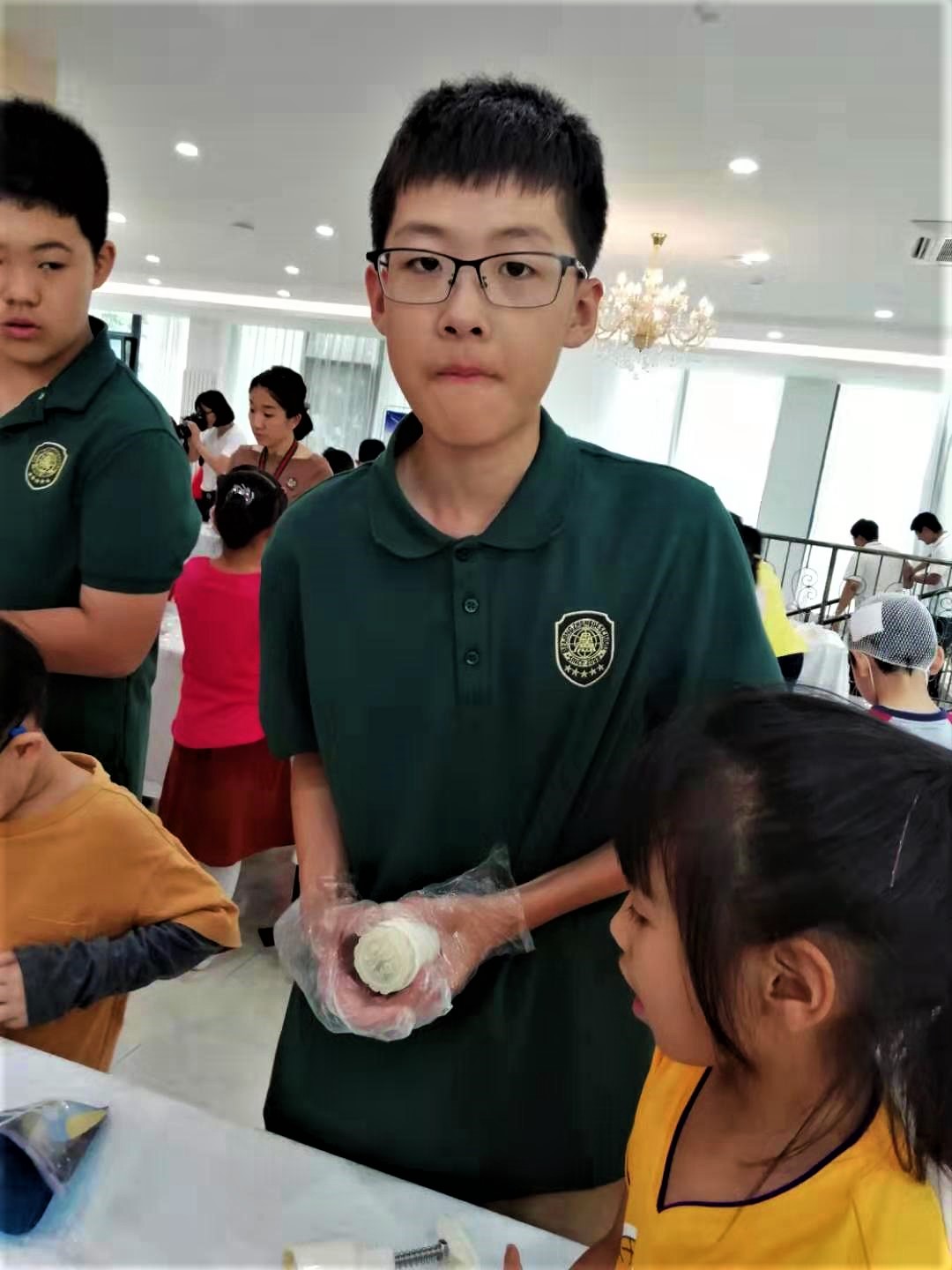 It was a lot of fun! The Middle Schoolers stayed behind in the canteen after lunch to put away the dining chairs, clean the tables, and lay lots of cellophane down. We set up the stations with our cake molds, and the canteen workers brought out our balls of filling (green or red bean) and warm pounded rice. The little primary students were brought in, and we all played around with the dough and molds. The best part was definitely eating our creations!
