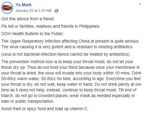 This mess has been shared over 16,000 times on facebook!! A dry throat or fried/spicy foods DO NOT make you more prone to the virus. SMH.