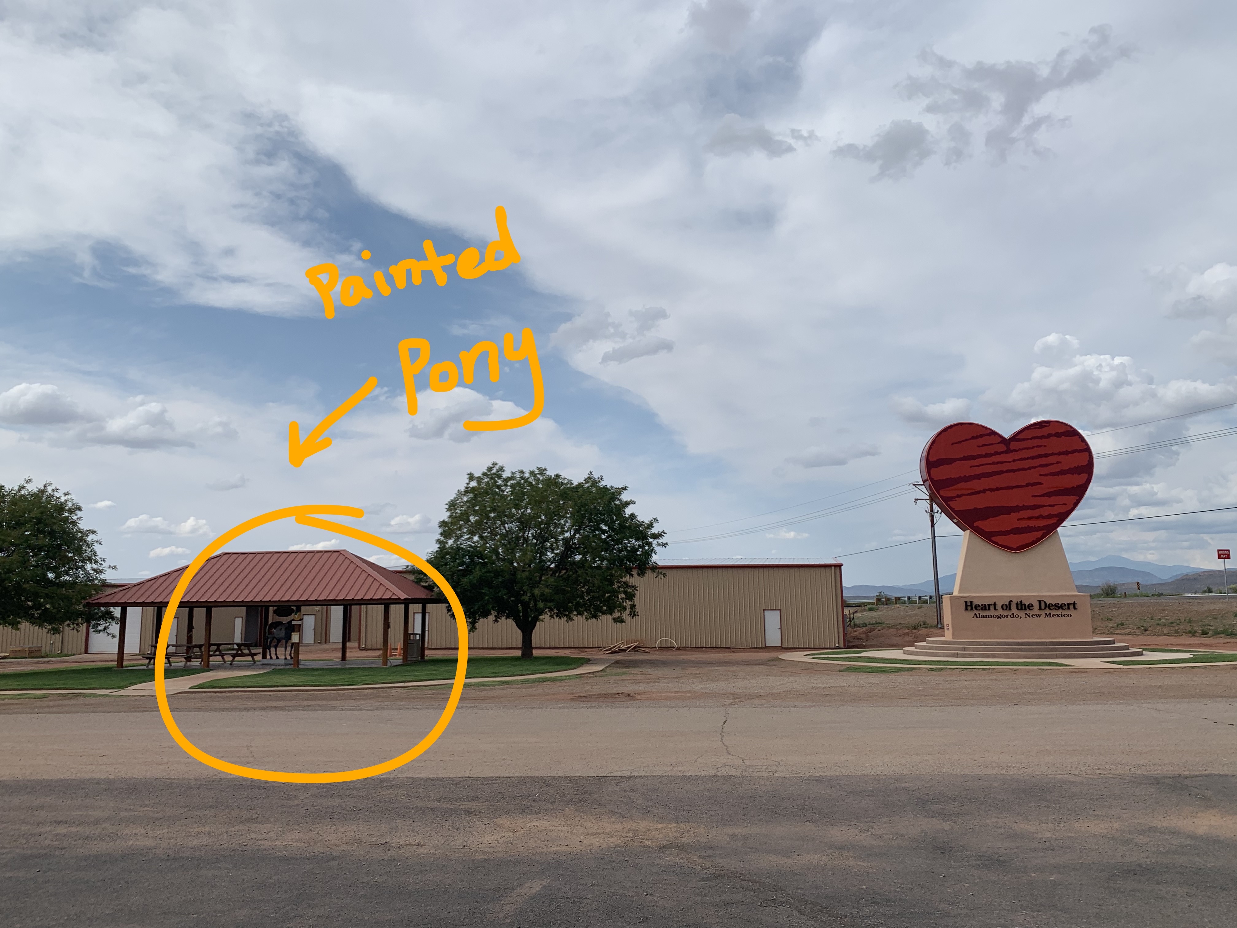 While at Heart of the Desert be sure to visit the Painted Pony, “Apple-oosa,” my wonderful artist mother-in-law, Penny Thomas Simpson, painted!  It was recently smashed by unknown perpetrators, but it has been painstakingly put back together by Penny and is back at the picnic area next to the Heart of the Desert sculpture. Stop by and show it some love! No word yet on if McGinn’s will install a painted goat.