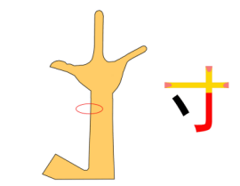 For anyone interested in learning to write the Chinese character cùn (寸), students in China are taught to think of it as a three-fingered hand with an arm and elbow.