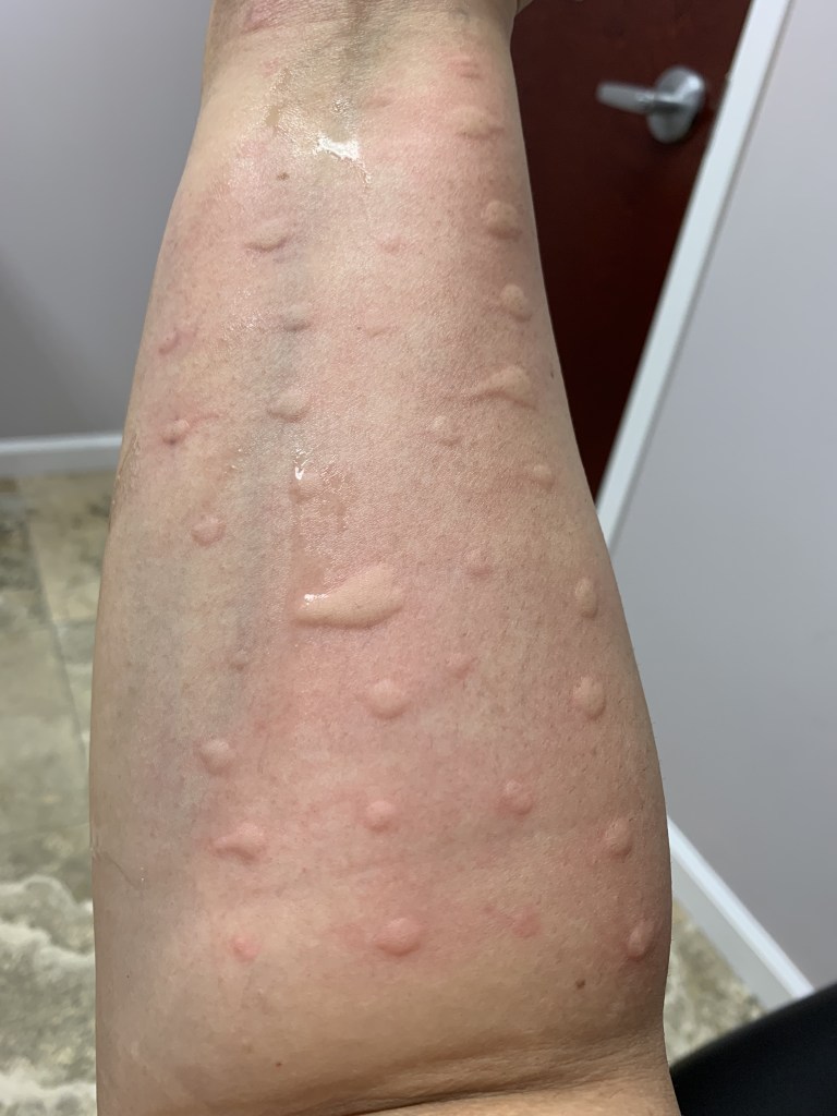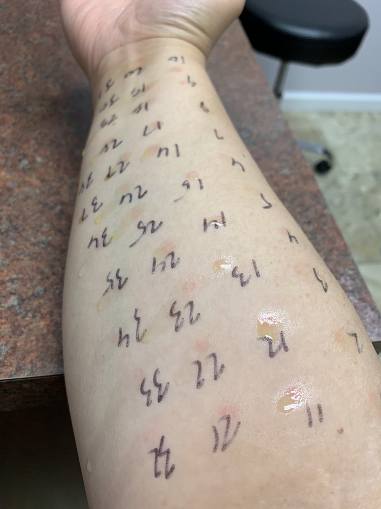 Trigger Warning: Photos of skin pricks and hives/reactions below.