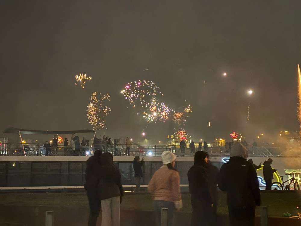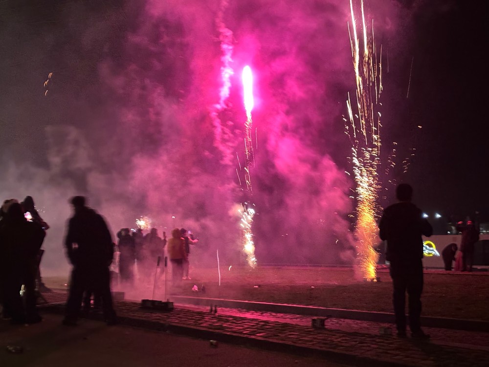 Surprisingly, the German government doesn’t have state sanctioned fireworks for new year’s! It is all up to the public to provide their own – and boy do they for the one day they are allowed to. After a late dinner at Heimat, one of the few restaurants with spaces left for our last-minute booking, we made our way to the river walk. Along the way, we witnessed multiple groups of people at random intersections lighting off loud Roman candles and other fireworks.